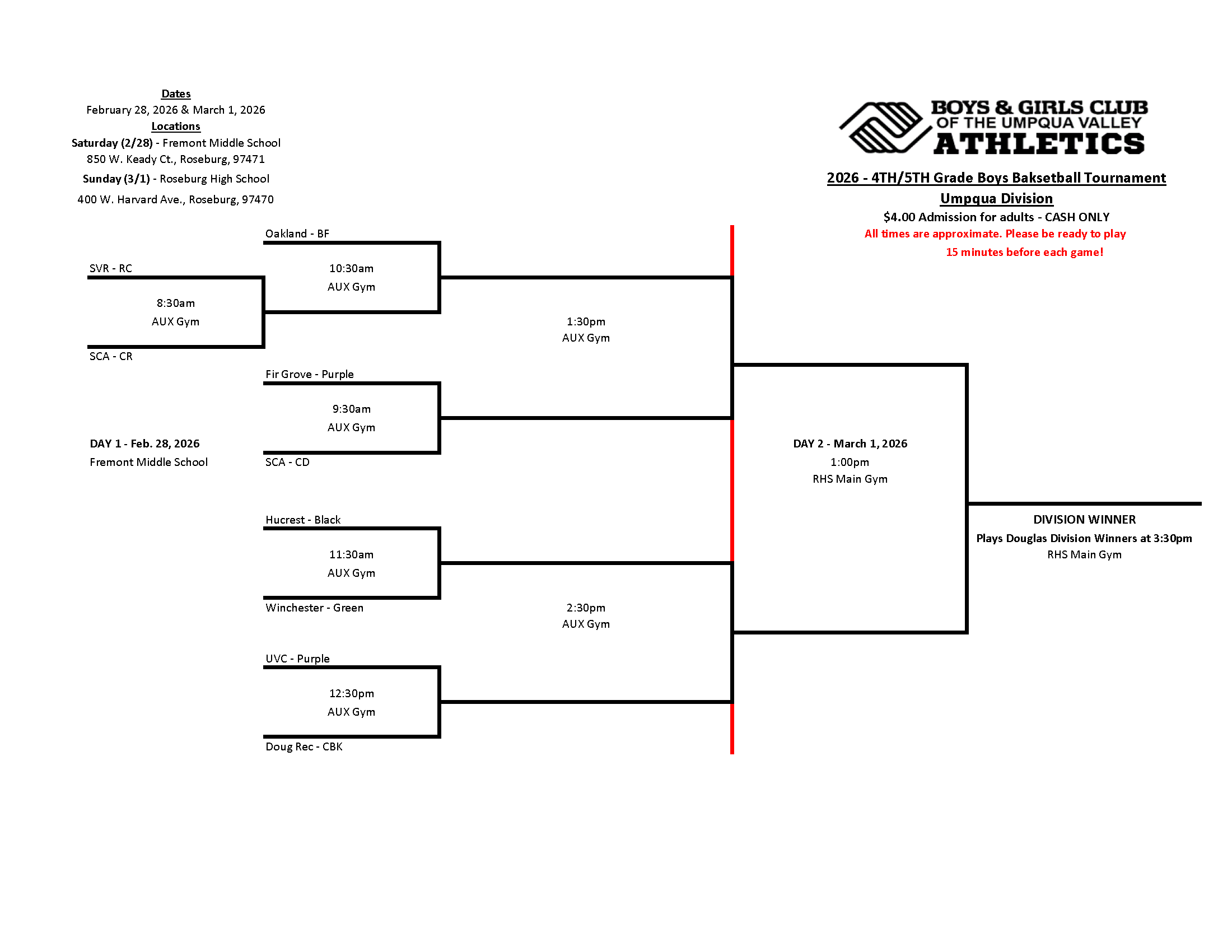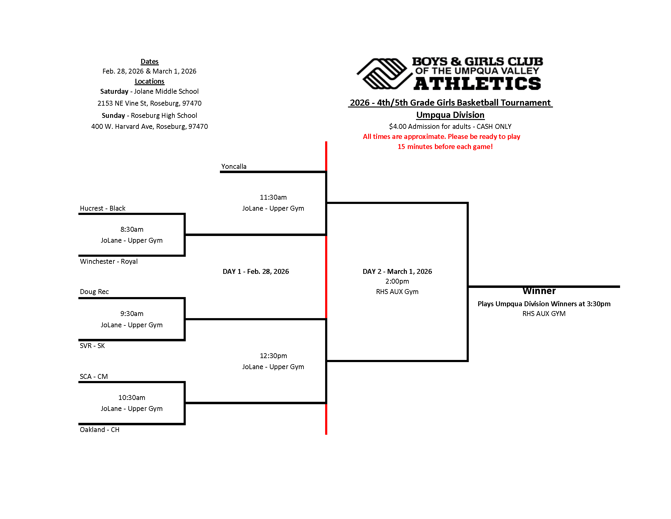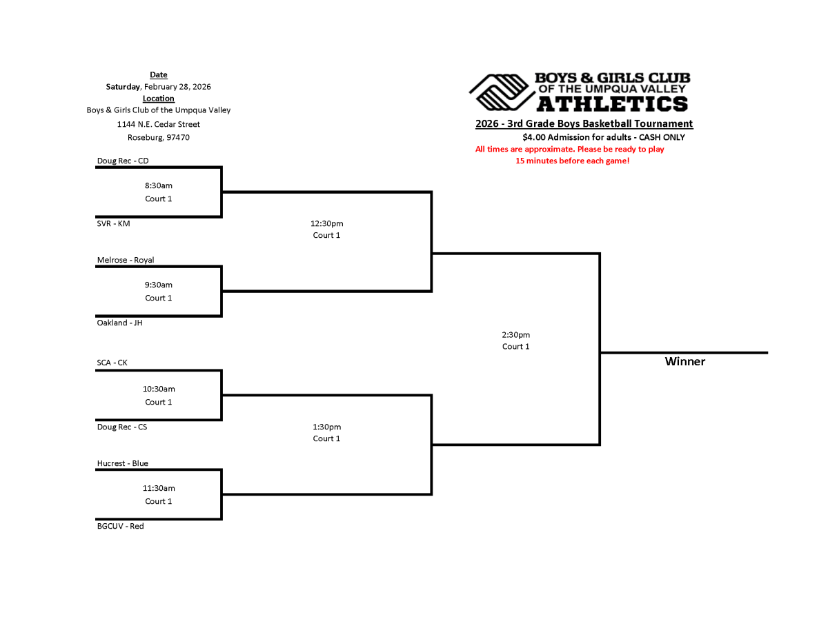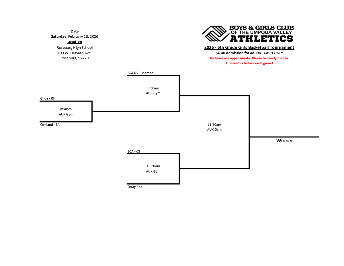 2026 Boys & Girls Club of the Umpqua Valley Basketball Tournament Brackets